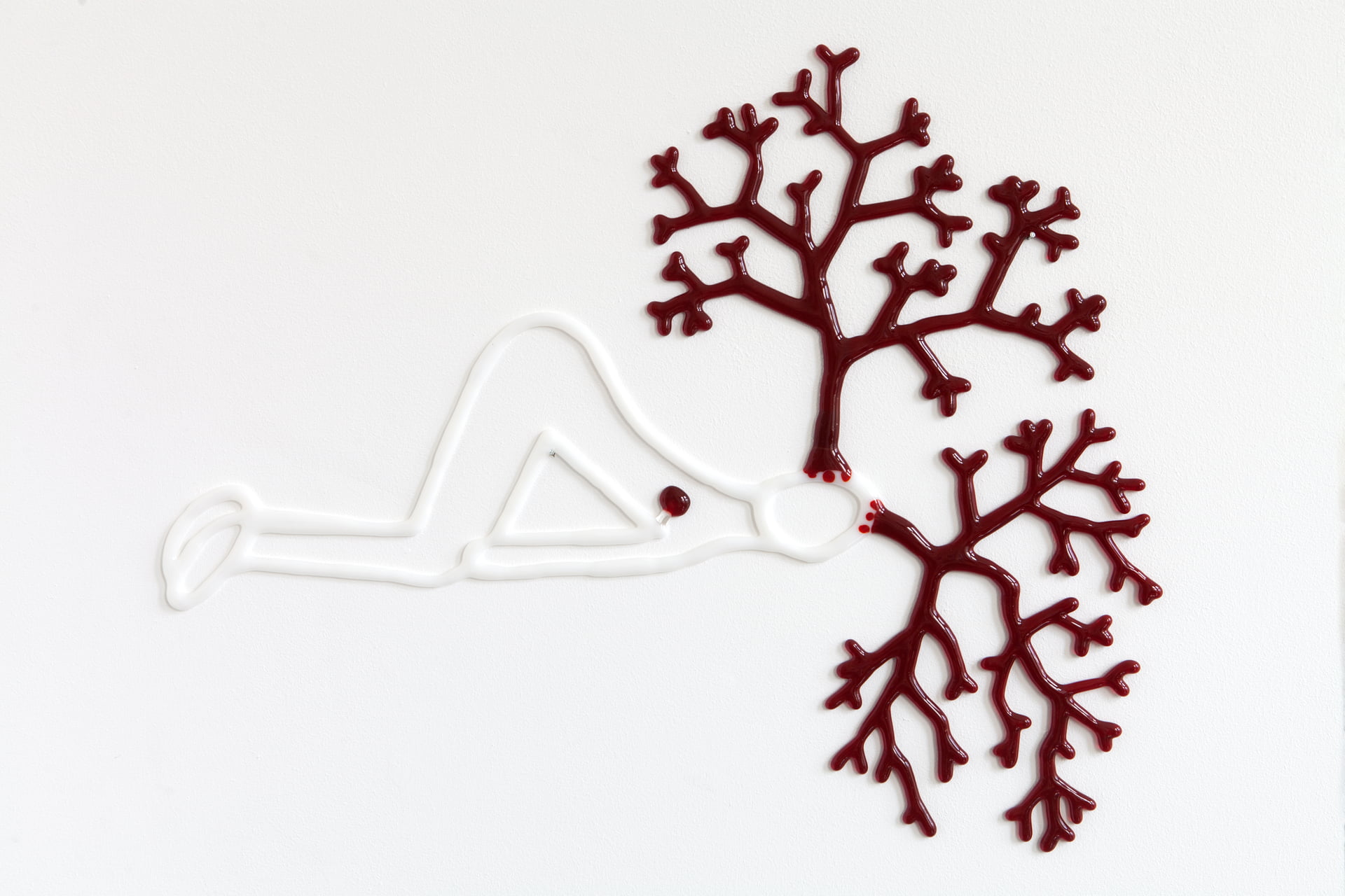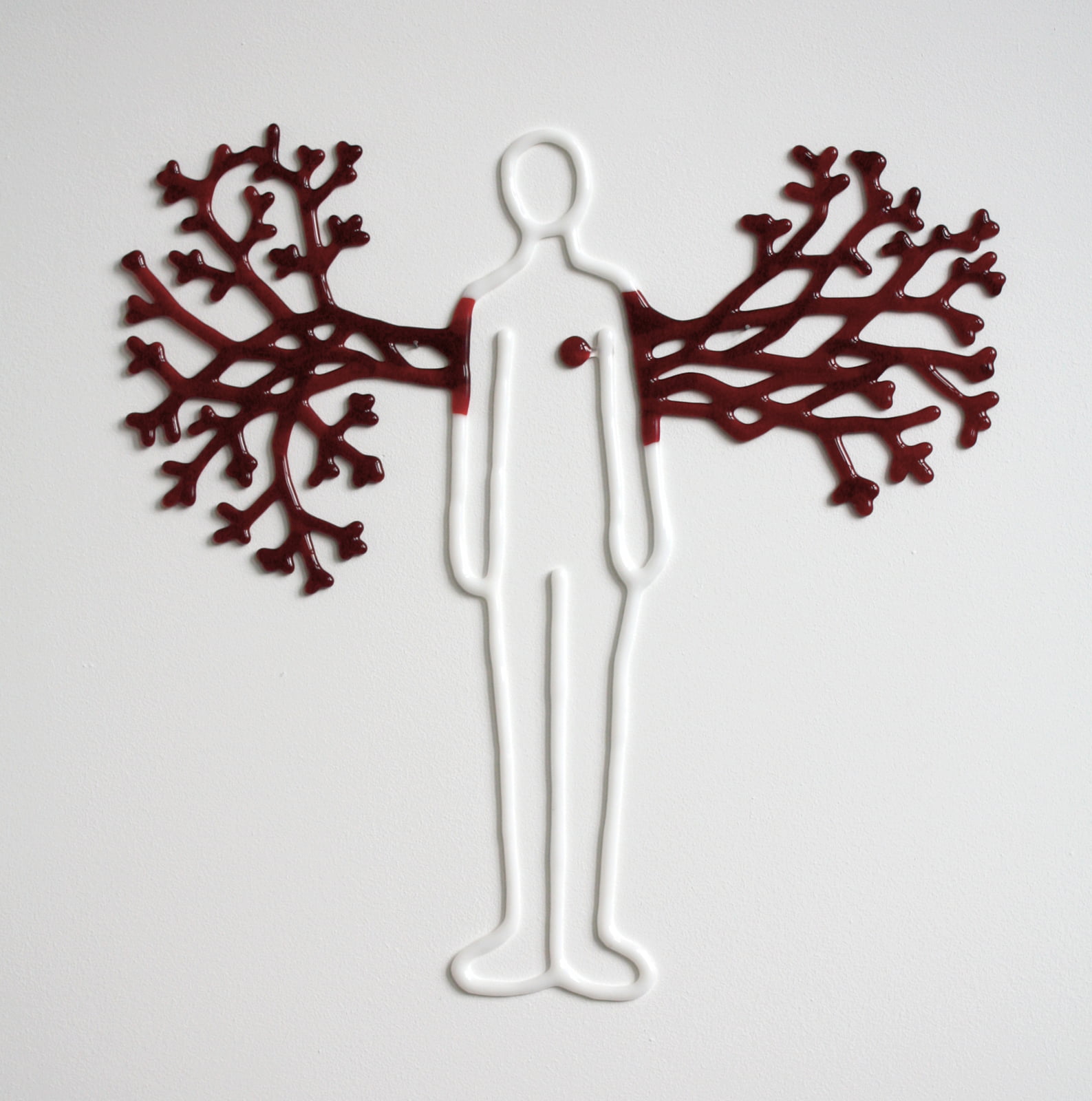 Alle Werken beelden grafisch glas sieraden werken op papier Dih-Fjooz Cageman Vleugelmens Runner Madreaeon, Ilivemylivetreecycle Flooded Thisisus Partofme Outgrowingme Grounded Surroundclosure Over It, Red Handed Leap je bent aan het einde